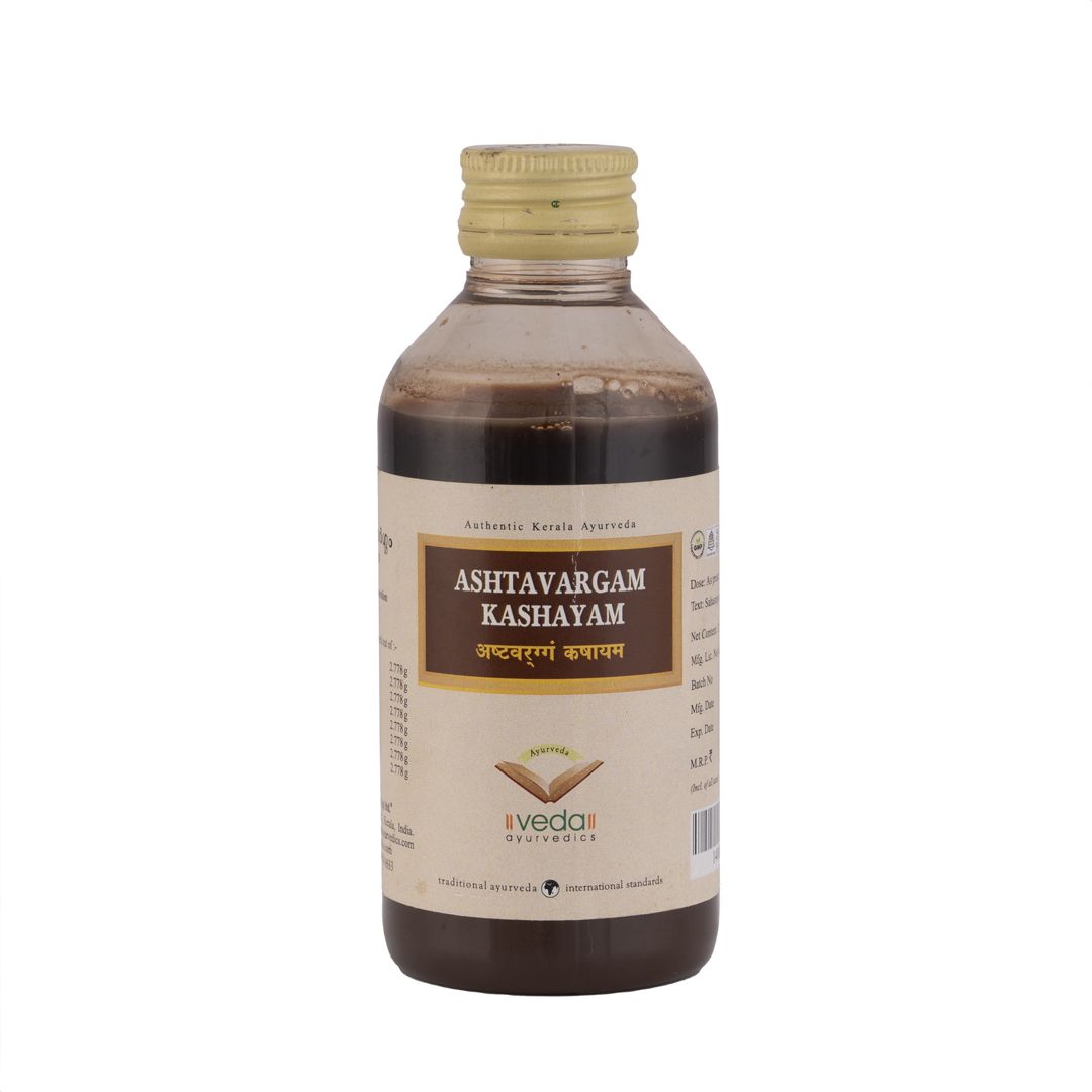 Product Description: Ashtavargam Kashayam is an Ayurvedic formulation consisting of eight potent herbs designed to balance Vata dosha. It is used to treat a variety of Vata-related disorders, including joint pain, stiffness, and neuromuscular conditions.